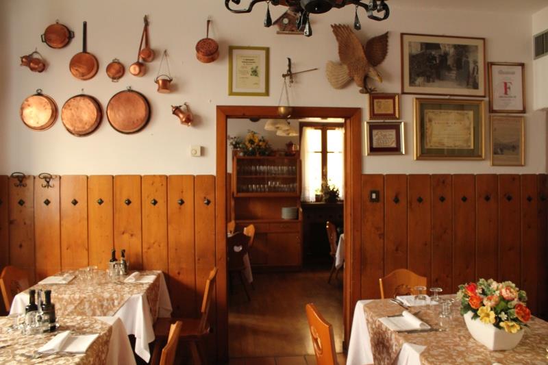 Die Trattoria Pié di Castello ist ein familienbetriebenes Restaurant. Sie wurde Ende des 19. Jahrhunderts von Eugenio und Giuseppina Benini gegründet und wurde seitdem von Generation zu Generation weite rgeführt. Heute betreiben sie Giorgio und dessen Frau Dolores, die dritte Generation, Seite an Seite mit ihren Töchtern und bieten ihren Gästen hochwertige Speisen in einer ungezwungenen, gemütlichen Atmosphäre an. Die Trattoria Piè di Castello befindet sich in einem Gebäude von 1663 in der mittelalterlichen Ortschaft Cologna di Tenno, 4 Kilometer von Riva del Garda entfernt. Das Lokal ist groß, aber in viele kleine, aneinander gereihte Räume gegliedert. Dies, in Kombination mit der Holzeinrichtung, dem mit Cotto gefliesten Boden, den vielen Pflanzen, den dekorativen, an den Wänden aufgehängten Zweigen und der Liebe zu jedem Detail schafft ein rustikales Ambiente und eine warme, familiäre Atmosphäre. Wenn Sie eintreten, werden Sie sich fühlen wie in einem gemütlichen Chalet in den Bergen.